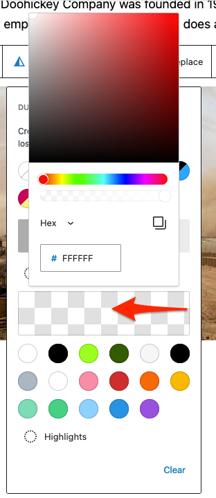 In the case of a single color logo or icon there is only one color that can be applied – the shadow … besides the default selections you can set any custom hex value by clicking in the checkered region.