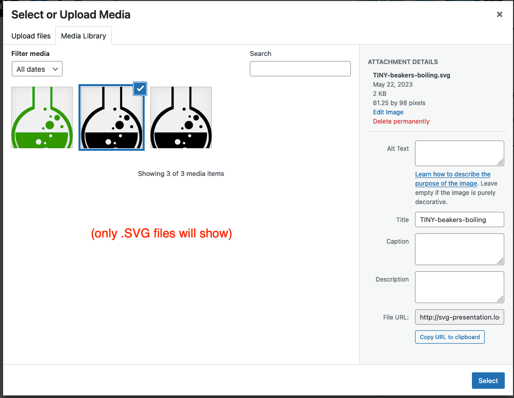 If the .SVG file has fill colors defined within it then the icon “color” over-ride will not “take” however the other controls (background color, size, margin, padding, border) work just fine: